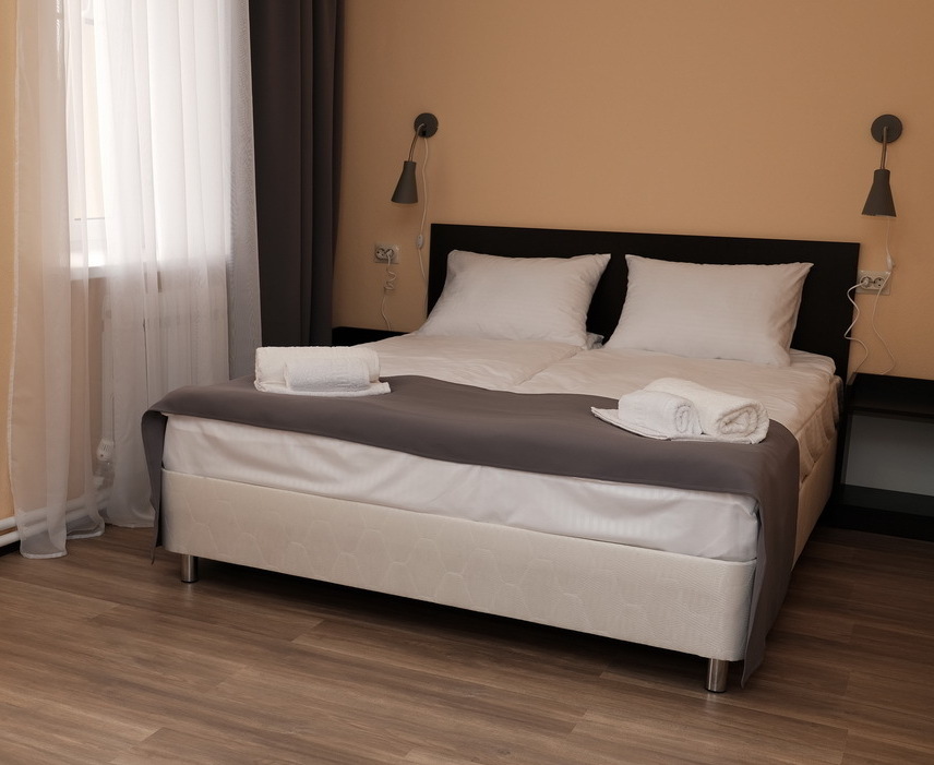 Двухместные номера включают полноразмерный диван-кровать, гостиничная химия (гель, шампунь, мыло) чай, бутилированная вода, сплит систему, телевизор с плоским экраном, холодильник, зеркало, полный санузел.